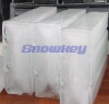 Snowkey Ice Block Making Machine is plug-ready andspecially designedfor tropical conditions and coastal climate. Themachine consists of a 40ft or 20ft container,according to ISO, GFRP coated with anti-corrosive treatment. All parts in contact with brine or water are of stainless steel, galvanized or effectively anti-corrosion treated. The brine-tank is fully insulated and covered by removable panels. The ice-cans are of stainless steel , whose thick sides (1.5mm) withstand evenrough handling. The ice is harvested with the aid of an electric overhead crane with push button control. Strong heating elements in the trawing bath ensure that the blocks detach quickly from the cans.The blocks then slide smoothly through an aperture into the ice storage room. The freezing cycle of block ice machine takes about 8 hours, corresponding to three continuous harvests per day,the basis of the indicated daily capacity. Ice block , standard sized are: 12.5 kg = 150 x 130 x 700 mm 20 kg = 250 x 130 x 700 mm 25 kg = 300 x 130 x 700 mm 50 kg = 460 x 180 x 800 mm We can design the sizefollow you demand,please contact us for detail.